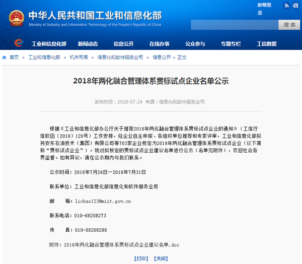 通威太陽能榮列2018年兩化融合管理體系貫標試點企業公示名單