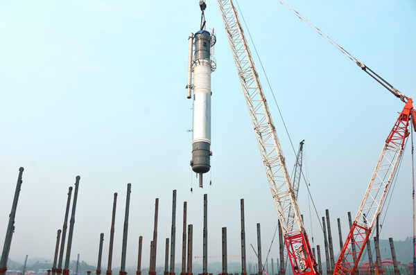 永祥股份樂山高純晶硅項目首節精餾塔順利完成吊裝