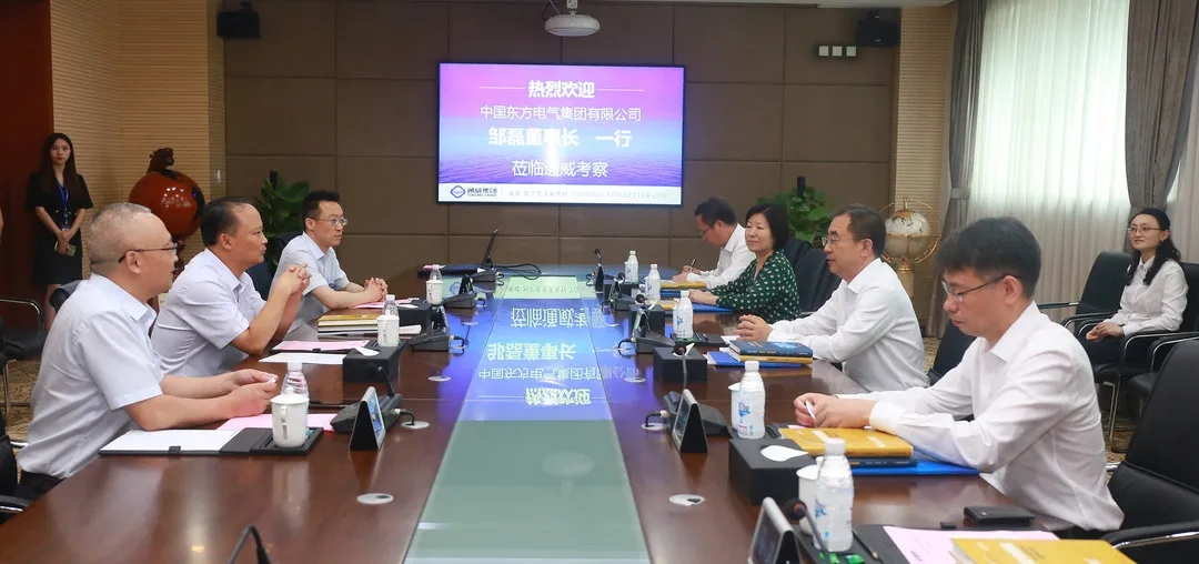 7月22日,東方電氣集團(tuán)黨組書記、董事長鄒磊一行蒞臨通威考察,十一屆全國政協(xié)常委、全國人大代表、通威集團(tuán)董事局劉漢元主席熱情接待,通威集團(tuán)副總裁胡榮柱,通威股份光伏事業(yè)部總裁陳星宇陪同接待。