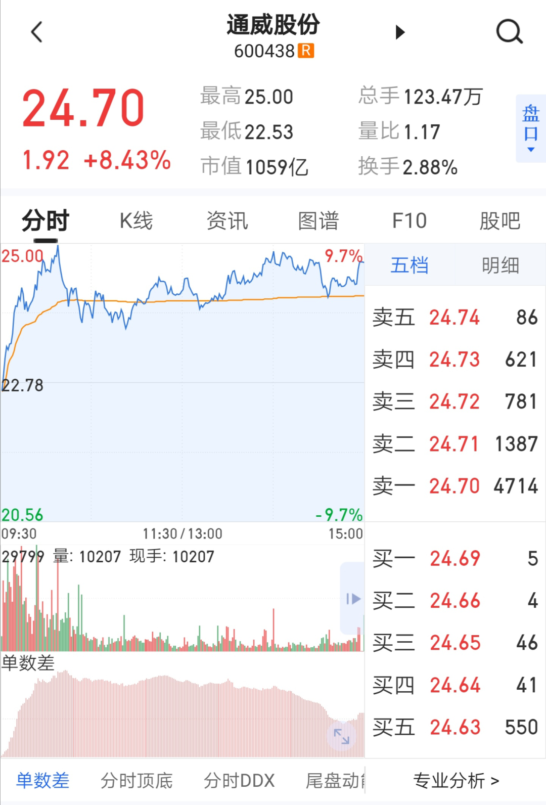 7月21日,通威股份早盤股價拉升至24.2元,市值突破千億元。截至7月23日收盤時,通威股份股價報收24.7元,市值為1059億元,A股又一光伏龍頭企業市值突破千億元。 千億市值的突破,不管是對企業而言,還是對行業的意義,都是里程碑事件之一。正是這些個體的不斷成長,才助力中國光伏企業總市值突破10000億元。(截止7月20日收盤,158家中國光伏上市公司總市值已達12941億元,較月初增長了1416億元) 通威股份市值破千億 2019年以來,通威股份總市值增長了679億元,增幅達211.08%。得益于光伏業務的強勁增長,通威股份去年營收達375.55億元,同比增長36.39%;凈利潤26.35億元,同比增長30.51%。公司擬每10股派發紅利1.86元。 今年以來,通威股份宣布了近300億元的產能擴張計劃,其中包括30 GW高效太陽能電池及配套項目、7.5萬噸的高純晶硅項目等。根據已有及在建項目的進度情況,預計樂山二期及保山項目實施后,高純晶硅年產能將達16萬噸。公司將打造高純硅料世界龍頭的同時,進一步鞏固和提升電池片的世界龍頭地位。此外,公司還將繼續堅持專業化、差異化、成本領先原則,形成系統的綜合競爭能力。 成功沒有偶然。通威市值破千億元,既有強力的業績支撐,更在于其構建的宏大想象空間。 通威股份已在全球高效電池片領域“獨占鰲頭”三年,其高純晶硅的業務布局也已呈現出從追趕到引領的明顯“氣象”——而從近年的布局和規劃來看,通威未來的發展還遠不止于此。 事實上,數年來,這家企業創造的各種“速度”和“第一”早已讓人目不暇接。不管產業處于“滯緩期”、上升期、困惑期,還是“531”后的冰凍期,這家企業在戰略上的定力與執行,從來沒有打絲毫的“折扣”,甚至是加速實現,提前達成目標。 落子如風、說到做到——通威的戰略定力與長期形成的執行文化無疑深刻影響著這家企業的長遠發展。 誠如著名政治與歷史學家漢娜-阿倫特所言,“你的來路也代表著的去路”。如果回溯通威過去兩年的項目布局與落地,“速度”和“效率”幾乎是這家企業所有項目布局與企業發展的代名詞,由此,通威股份近年強勢擴張,迅速夯實并擴大了自身的競爭優勢。 “細節決定成敗,效率決定效益,速度決定生死,能力決定實力,有為決定有位”,在通威看來,不管行業如何變幻,首先都會盡全力把自己的事做到行業最好——這正是其在“變與不變”的哲學命題中選擇的終極答案。 談到通威在光伏領域的戰略布局,來自隆基、陽光電源、中環、環太、先導智能等多家企業的掌舵人在2019年表達過這樣的贊許:這需要企業領導者強大的戰略思維和戰略定力,同時也需要強大的突破意志和團隊的戰略執行力。 原國務院參事、中國可再生能源學會第七屆、第八屆理事長石定寰指出:通威從規模,技術水平,設備生產、產品質量、企業管理,員工素質等方面均體現了中國優秀企業的強大實力,是中國的驕傲,我們用我們自己的智慧,打造了戰略性產業的制高點,引領了全球發展。 時值平價上網前夜,十三五收官之年,不管行業如何變化,通威在光伏領域的布局和執行不打折扣,甚至超出此前預期;其在新能源領域的戰略決心愈發執著。 對于新能源產業,無論是通威,還是所有身處其中的企業和企業家而言,當前的謀略、布局和發展,也許僅僅是一個新的發端與開始。 毫無疑問,伴隨平價上網時代的到來,中國乃至全球新能源產業的發展即將邁入全新的時代。而通威股份在能源領域的愿景始終如一——加速成為“世界級清潔能源企業”。