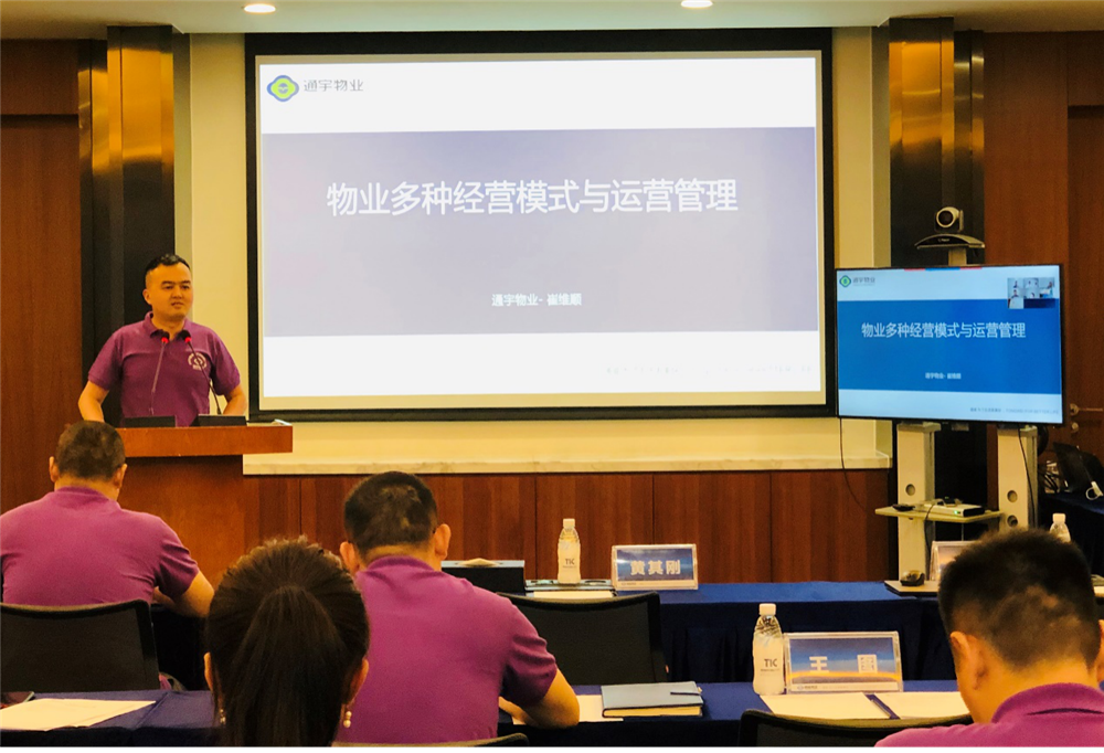 通宇物業副總經理崔維順作《物業多種經營模式與運營管理》課程培訓,介紹了公司多種經營開展的背景、公司對標百強企業多種經營的差距,以及行業標桿公司的市場動作,并圍繞多種經營項目開展及運營管理的話題,引導團隊現場參與討論,積極交流。