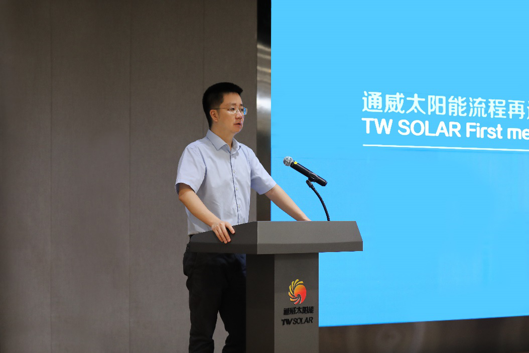 7月21日,通威太陽能流程再造項目匯報會在成都基地成功舉行。通威股份董事長謝毅出席,通威太陽能成都、合肥兩地中高管及部分員工參會。
