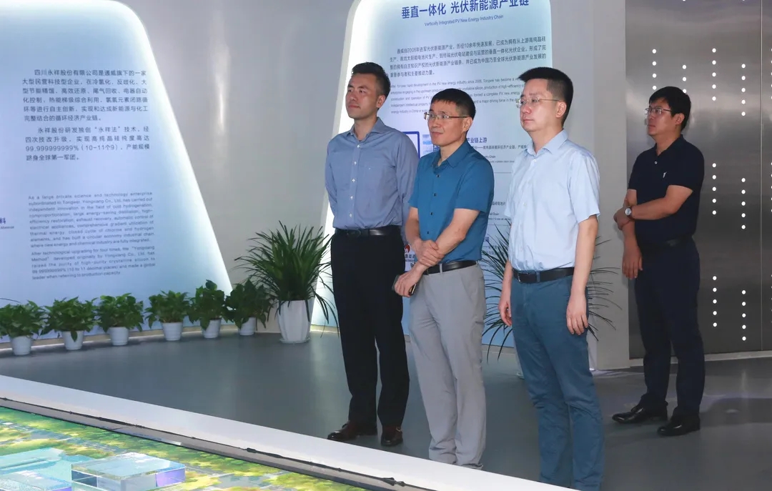 永祥股份董事長段雍陪同高紀凡董事長參觀永祥新能源