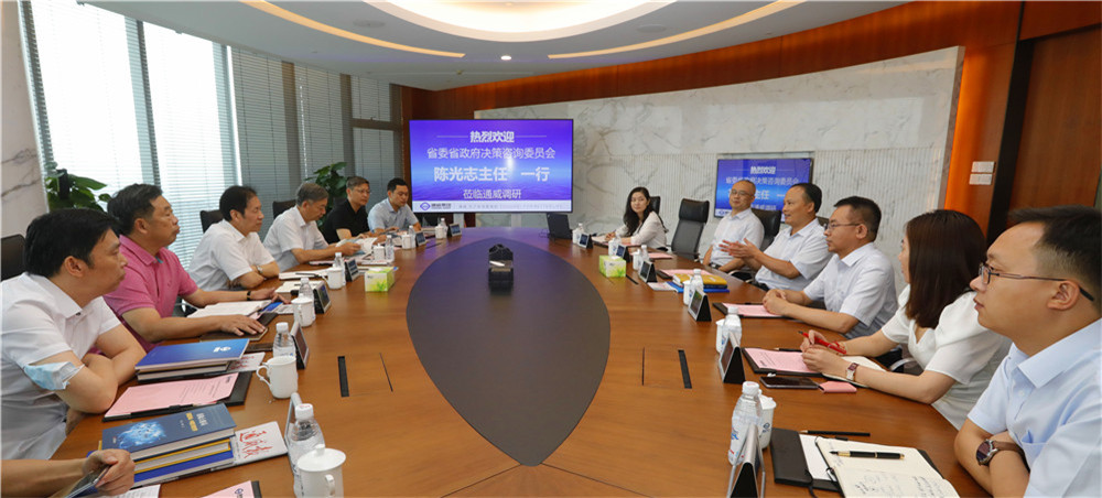 7月8日,四川省決策咨詢委員會主任陳光志、副主任王海林一行蒞臨通威調研。十一屆全國政協常委、全國人大代表、通威集團董事局劉漢元主席,通威股份董事長謝毅,通威集團副總裁胡榮柱熱情接待。
