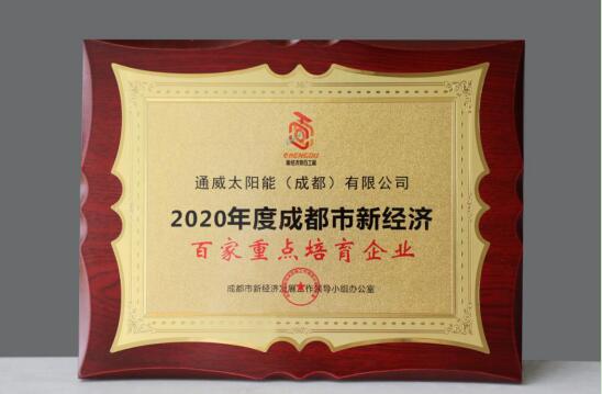 通威太陽能成都公司榮獲2020年度成都市新經(jīng)濟(jì)百家重點(diǎn)培育企業(yè)