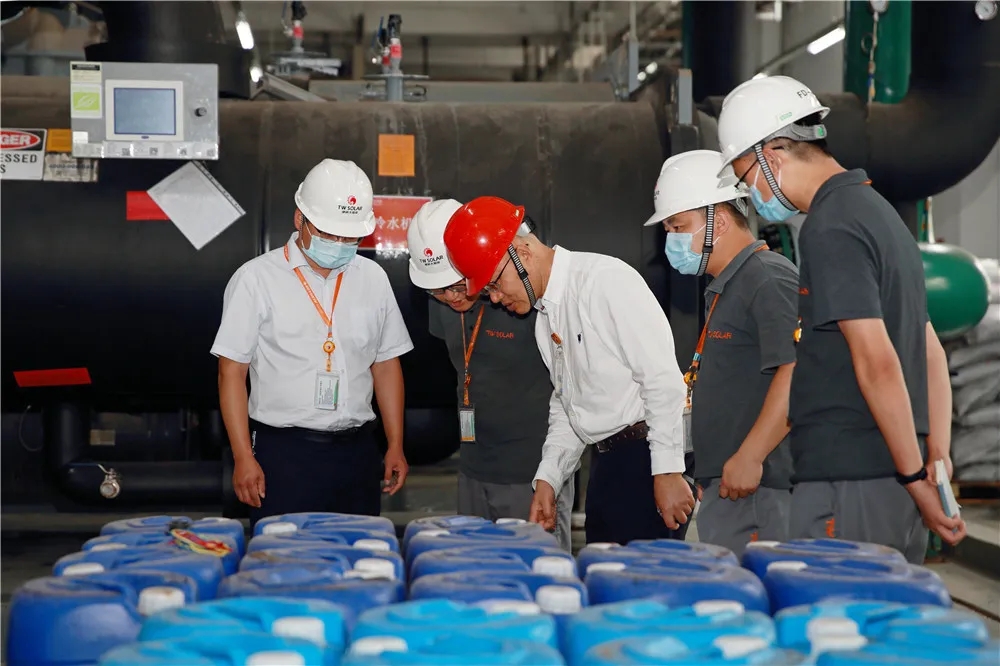 通威太陽能副總經理張忠文查看危化品貯存規范性