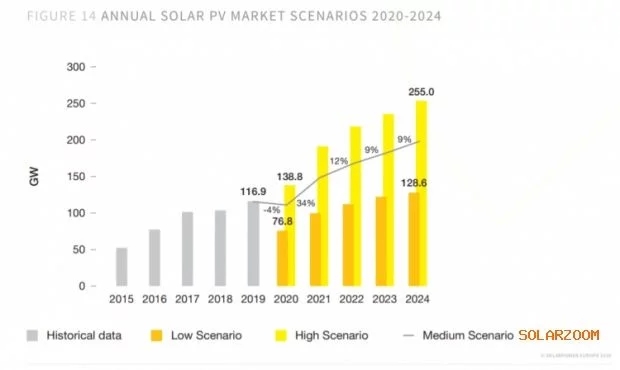 “但是,這是最理想的情況,也就是重要市場的決策者們決定從太陽能中獲益,在新冠疫情經濟復蘇一攬子計劃中,把太陽能放在重要地位。這不僅有助于經濟反彈,也有助于這些國家在實現能源和氣候目標方面取得進展。