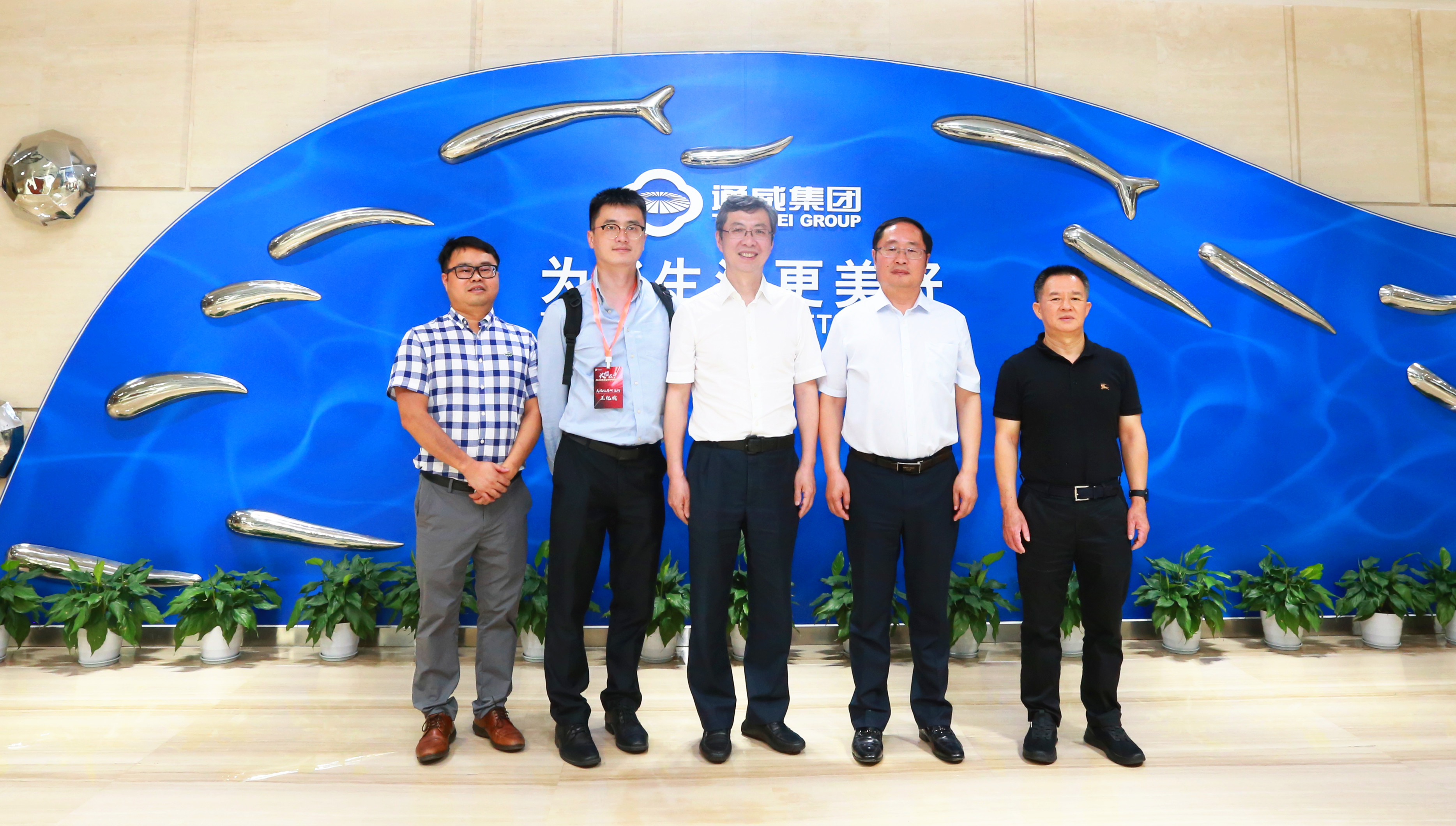 6月23日,上海證券報董事長張小軍、深圳菁英時代董事長陳宏超、木林森董事長孫清煥、至善半導體董事長梁旭東、天風證券副總裁趙曉光一行蒞臨通威考察。十一屆全國政協常委、全國人大代表、通威集團董事局劉漢元主席,通威股份副董事長嚴虎熱情接待并座談。