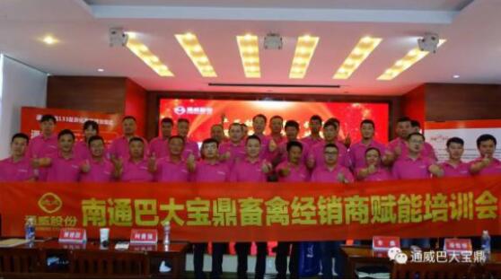6月18日上午,以“產品致勝·模式引領·服務增效·價值共贏”為主題的巴大寶鼎畜禽經銷商賦能培訓會在華東二區南通巴大順利召開。通威股份華東二區總裁柯善強、通威股份畜禽研究所片區技術總監李鑫、巴大寶鼎總經理黃建國以及來自上海、泰州和如東等地的意向經銷商出席會議。