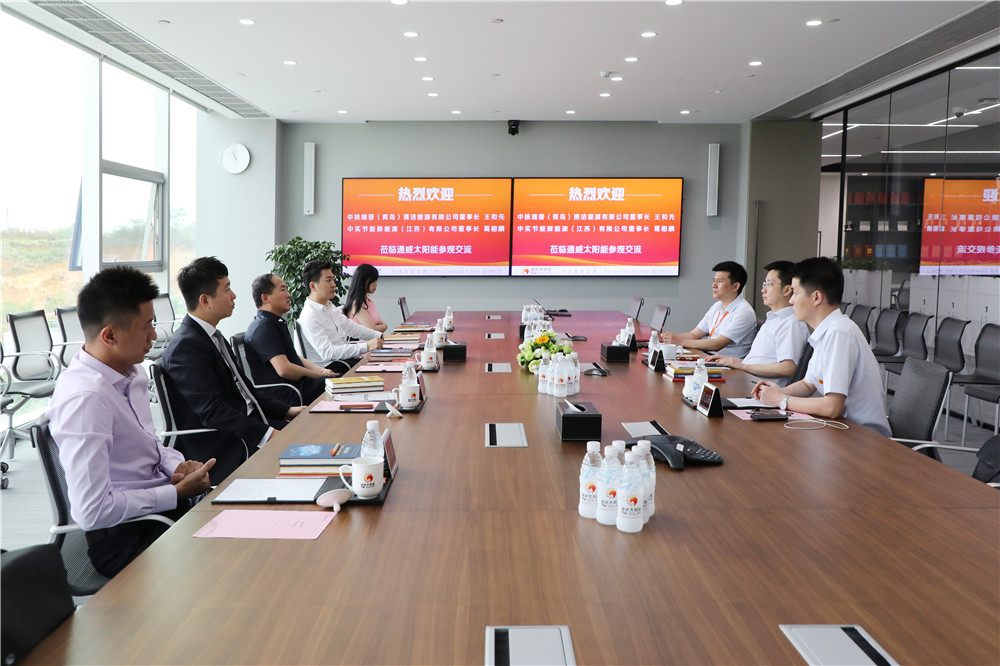 6月18日,中核瑞普(青島)清潔能源有限公司董事長王和先、中實節能新能源(江蘇)有限公司董事長葛相麟一行蒞臨通威太陽能參觀交流。通威股份董事長謝毅熱情接待并座談。