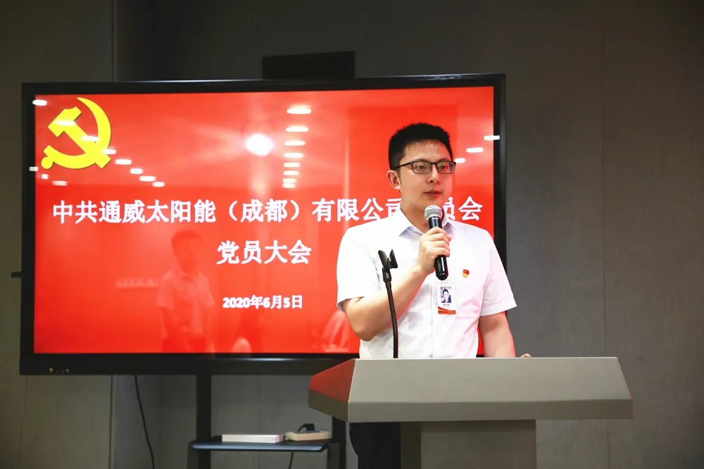 6月5日下午,通威太陽能成都公司黨委全體黨員大會在行政樓順利舉行,通威太陽能副總經理楊文棟等公司42名在冊黨員參加會議。本次會議根據《中國共產黨章程》和《中國共產黨基層組織選舉工作暫行條例》相關規定,選舉產生了第一屆委員會委員,并召開第一屆委員會第一次全體會議。