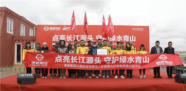 十余年來,通威堅定不移布局光伏新能源產業,打造了具有自主知識產權的完整光伏新能源產業鏈,并成為中國乃至全球光伏新能源產業的核心參與者和主要推動力量。在通威集團董事局劉漢元主席的高度重視下,通威積極響應習近平總書記在十九大報告中“加快生態文明體制改革,建設美麗中國”的號召,于2018年—2020年連續三年發起挺進青藏無人區光伏發電系統公益捐贈活動,充分發揚社會責任,克服高寒、高海拔地區的惡劣環境,三度挺進青藏無人區,徹底結束了當地不通電的歷史,為高原地區光伏發電作出良好示范,為青藏高原的基礎設施建設及環保工作不斷奉獻自己的力量。未來,通威將繼續朝著打造世界級清潔能源企業的目標闊步邁進,繼續推動并引領全球清潔能源革命,為子孫后代留住青山綠水、白云藍天!