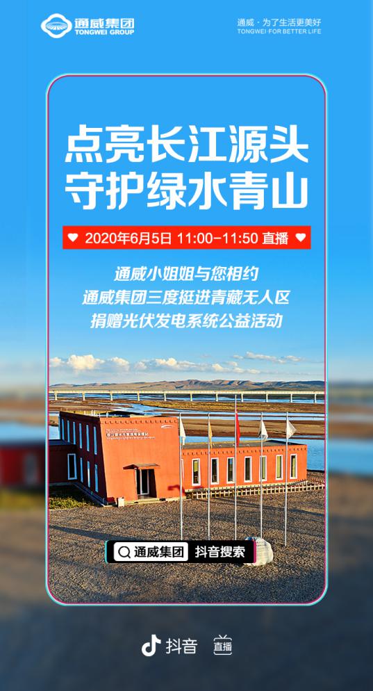 “點(diǎn)亮長(zhǎng)江源頭 守護(hù)青山綠水——通威集團(tuán)三度挺進(jìn)青藏?zé)o人區(qū),光伏系統(tǒng)發(fā)電公益捐贈(zèng)儀式,將于明日上午11:00-11:50在抖音進(jìn)行海拔4540米的直播,進(jìn)入抖音平臺(tái),直接搜索#通威集團(tuán)#即可觀看,敬請(qǐng)期待!