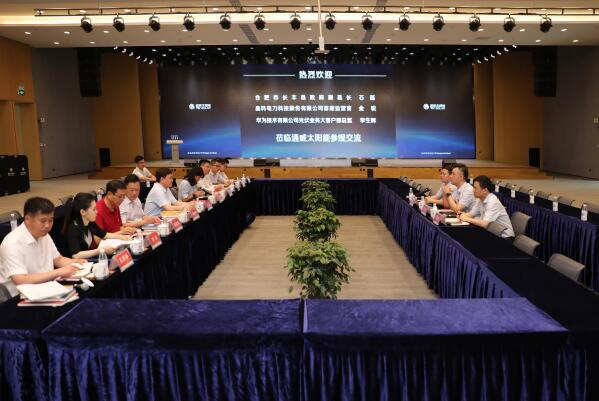 座談交流中,通威太陽能相關負責人介紹了公司發展歷程、產業鏈布局及未來投資發展規劃。石磊副縣長介紹了合肥長豐縣區位優勢及縣域經濟發展情況。