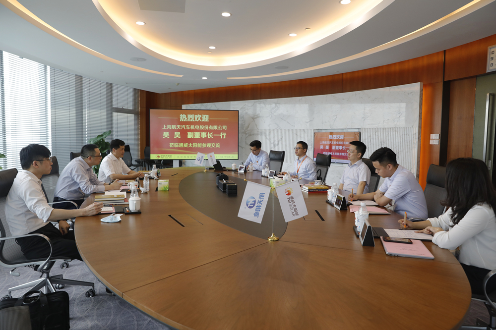 6月2日,上海航天汽車機電股份有限公司副董事長吳昊一行蒞臨通威太陽能參觀交流。通威股份董事長謝毅熱情接待并座談。