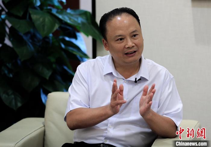 5月15日,全國人大代表、通威集團董事局主席劉漢元在四川成都接受中新社記者采訪。中新社記者 王磊 攝