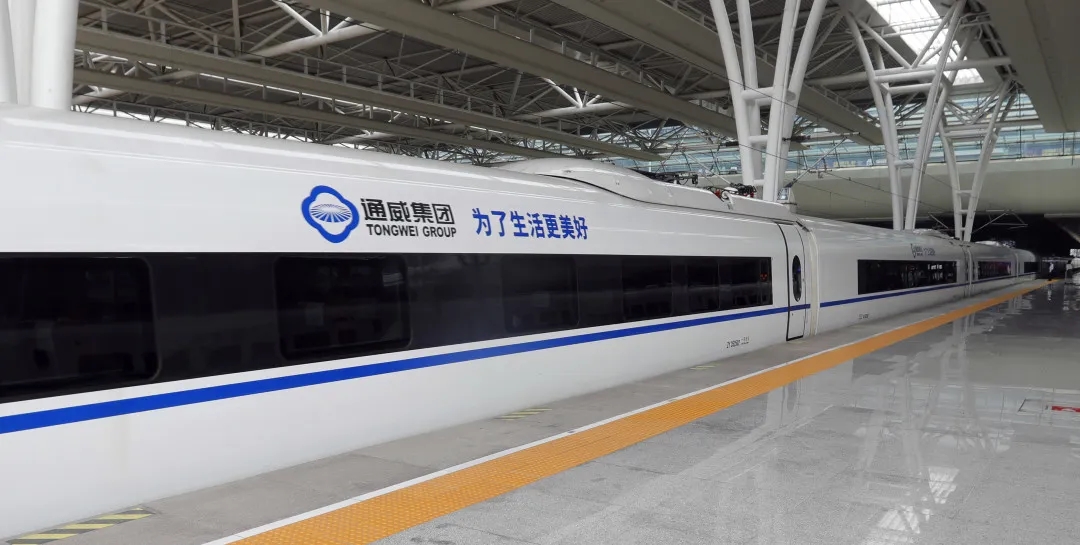 2018年10月10日,通威集團冠名的高鐵列車在京滬高鐵上海虹橋高鐵站首度發車,通威品牌傳播正式接軌高鐵時代,開創了品牌跨越嶄新模式。2019年首屆中國光伏領跑論壇期間,眾多權威媒體人、企業代表、行業專家乘坐“通威號”京滬高鐵抵達江蘇參加行業論壇,對高鐵冠名所展現的中國光伏企業形象給予了高度評價。