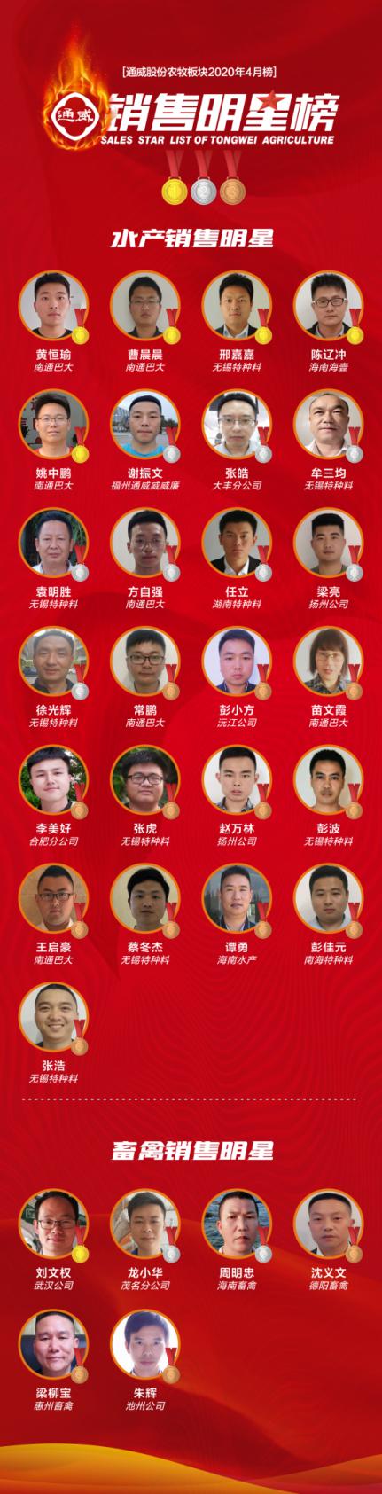 5月5日,“農(nóng)牧板塊4月銷售明星表彰通報”引爆員工話題!31位平凡的一線業(yè)務(wù)員憑借不凡增量與驚人收入,成為英雄脫穎而出!南通巴大水產(chǎn)料客戶代表黃恒瑜、南通巴大水產(chǎn)料客戶代表曹晨晨、無錫特種料水產(chǎn)料客戶代表邢嘉嘉等人4月收入均超過10萬元!31位營銷明星中,收入同比增長率為去年5倍及以上的人就有15位!更值得驚嘆的是:這還是養(yǎng)殖淡季,不難猜想隨著5-9月旺季到來,月薪10萬+、20萬+的基層員工還會源源不斷涌現(xiàn)!打勝仗、狂分享的團(tuán)隊故事還會屢見不鮮發(fā)生!