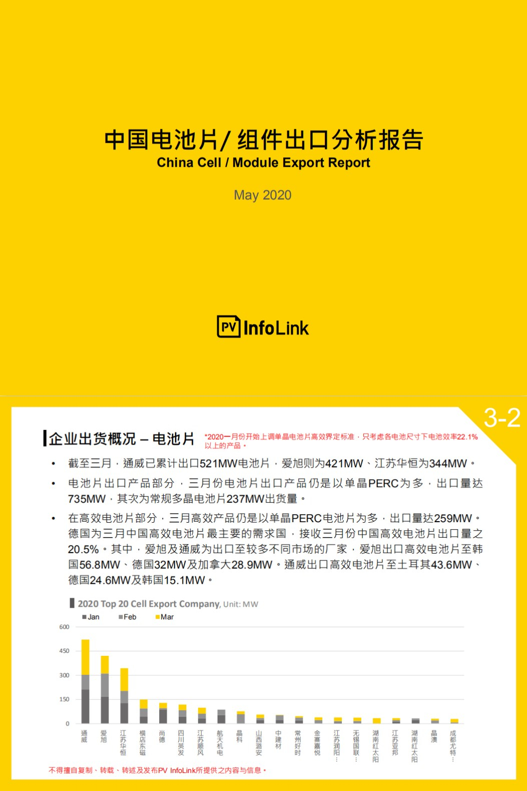 近日,根據(jù)光伏產(chǎn)業(yè)權(quán)威分析機構(gòu)PV InfoLink報告數(shù)據(jù)顯示,2020年第一季度通威太陽能電池片出口量排名第一。