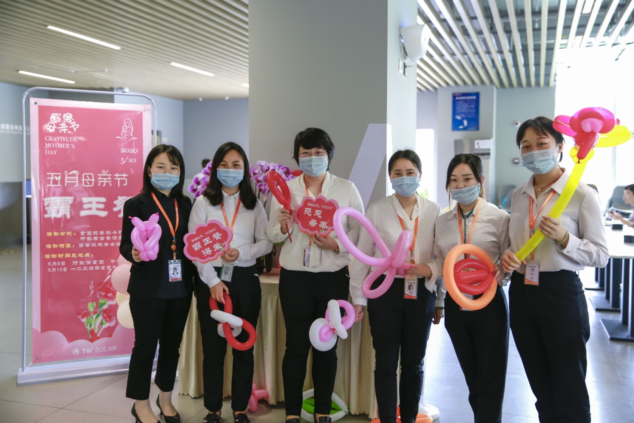 “世間萬物,唯有美食與愛不可辜負”,媽媽記得我們所有愛吃的東西,為我們挑剔的胃換著花樣做菜。成都公司開展的“母親節·霸王餐”抽獎免單活動,為現場女員工送上了一份份溫暖的祝福。活動現場用鮮艷的花朵和五彩斑斕的氣球營造了熱情、溫馨的氛圍,參加活動的女員工在享受美味佳肴的同時,還可以拍照為母親送上誠摯的祝福。 成都公司女員工拍照為母親送祝福 老吾老以及人之老、幼吾幼以及人之幼。忙于工作和生活的我們或許很少有時間陪伴在母親的身邊,感恩母親節主題活動旨在提醒忙碌中的廣大員工,勿忘感恩,孝敬母親,尊重母親。活動加強了員工們的感恩和責任意識,也傳達了一直以來通威太陽能對于“家文化”的重視,以感謝家人對通威員工的默默奉獻和支持。