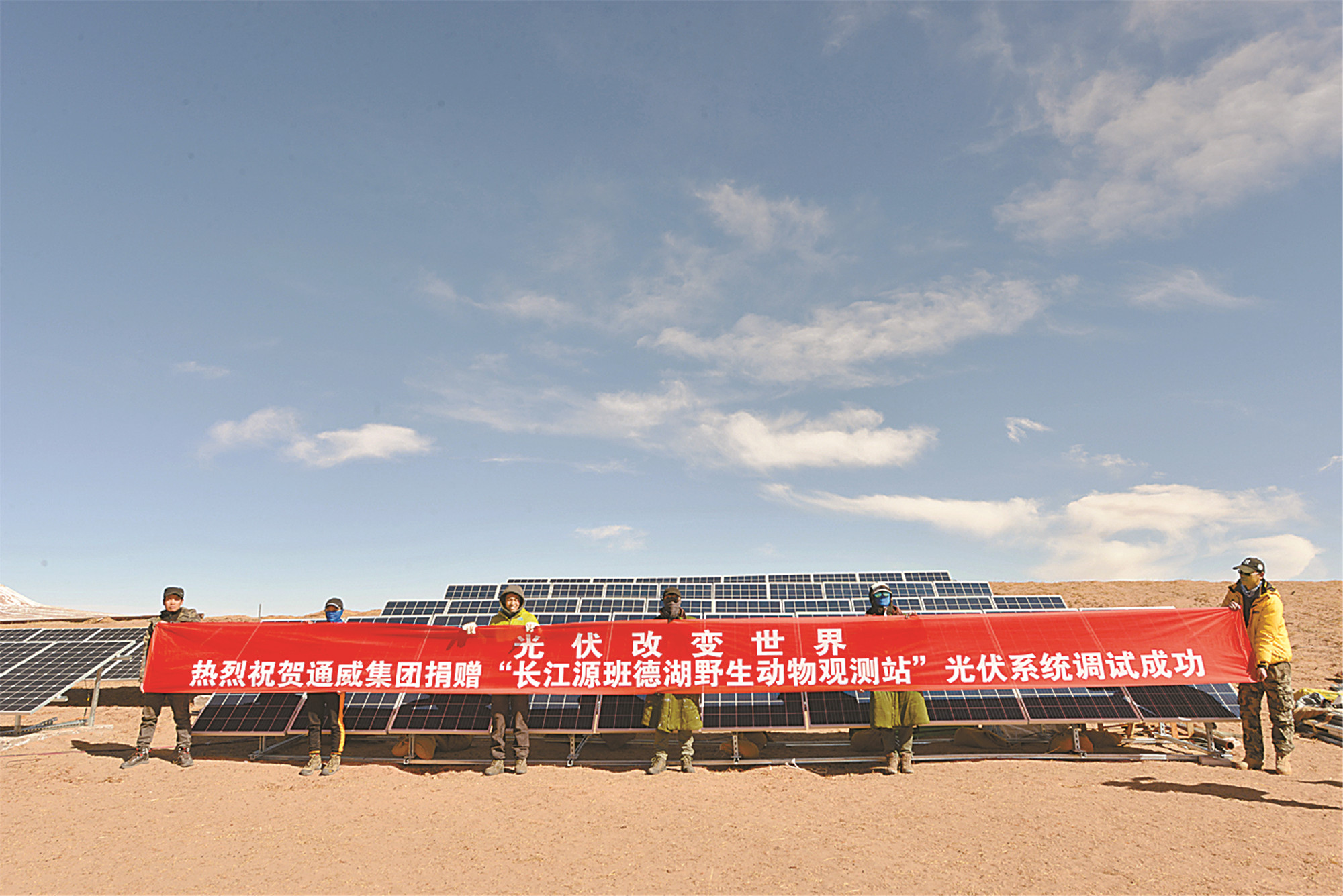 2019年,通威集團(tuán)捐贈(zèng)“長(zhǎng)江源班德湖野生動(dòng)物觀測(cè)站”光伏系統(tǒng)調(diào)試成功