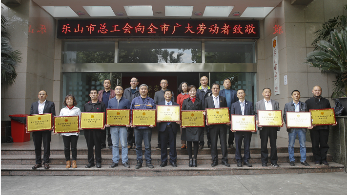 儀式上,樂山市總工會(huì)黨組成員、副主席蘭寧宣讀《四川省總工會(huì)女職工委員會(huì)關(guān)于表?yè)P(yáng)“同心戰(zhàn)役”最美女職工集體和個(gè)人的決定》《四川省總工會(huì)關(guān)于表?yè)P(yáng)四川省五一巾幗標(biāo)兵崗(標(biāo)兵)的決定》,并為獲獎(jiǎng)單位和個(gè)人頒獎(jiǎng)。市總工會(huì)黨組成員、副主席張雷宣讀《樂山市總工會(huì)關(guān)于命名樂山市勞模和工匠人才創(chuàng)新工作室的決定》,并為創(chuàng)新工作室領(lǐng)銜人代表授牌。永祥樹脂副總工程師杜亦軍及團(tuán)隊(duì)現(xiàn)場(chǎng)接受授牌。