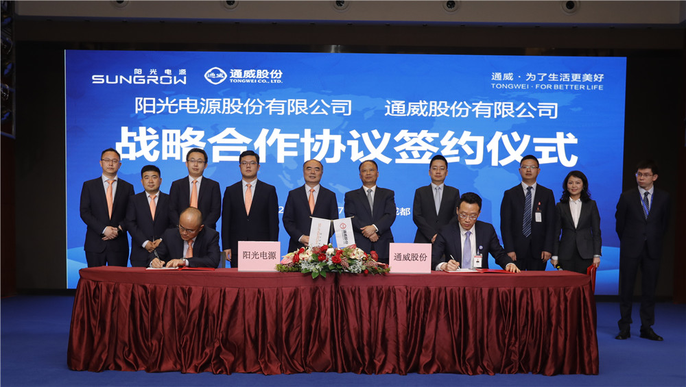 期間,顧亦磊副總裁與陳星宇總裁分別代表陽光電源與通威簽署戰略合作協議。未來,雙方將進行產業深度戰略合作,通過發揮各自在產能、技術等產業鏈相關環節的領先優勢,帶動并加強光伏產業鏈的資源共享與整合,共同推動行業產能優化和產業升級,促進光伏發電成本的持續降低,加速光伏發電平價上網進度,實現行業持續、健康、穩定、協同和高效發展。