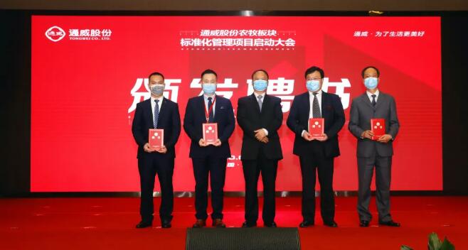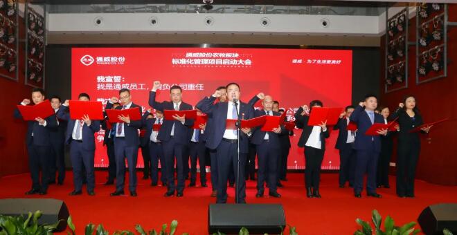 4月6日,通威股份農牧板塊標準化管理項目啟動大會在通威國際中心隆重召開,管理總部各體系及職能部門負責人、農牧板塊員工代表等270余人齊聚一堂,召開疫情以來現場規模最大的會議。各片區及分、子公司通過遠程視頻連線全程參與。通威集團董事局劉漢元主席出席并作重要指示,通威股份總裁郭異忠、監事會主席鄧三、副總裁宋剛杰、副總裁兼技術總監張璐等共同見證項目正式啟動。