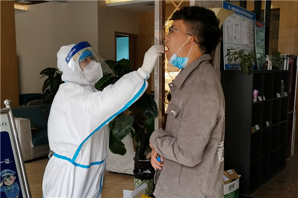 醫(yī)護(hù)人員為員工核酸檢測取樣