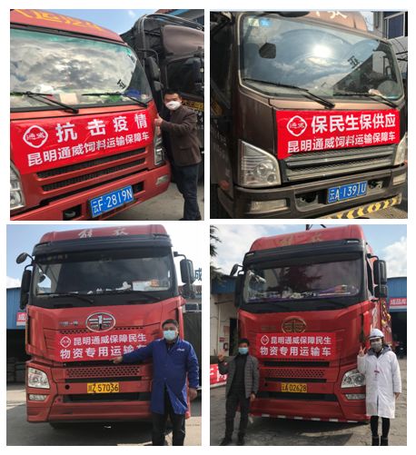 為將產品順利送達市場一線,昆明分公司想盡一切辦法,在道路封鎖、養殖戶飼養畜禽滯欄、飼料嚴重短缺的困境下,積極幫助客戶了解道路通行情況、辦理通行證明,最大程度保障飼料運輸車輛暢行,保障飼料供應。在飼料生產緊張的情況下,公司業務精英一天20個小時電話微信不間斷,緊追內部生產進度,調整計劃,安撫客戶和司機,第一時間滿足客戶需求,贏得了市場對通威的信任。