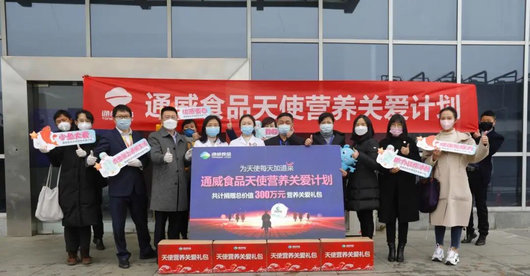為大愛致敬,為善舉點贊!新型冠狀病毒引發的肺炎疫情牽動著全國人民的心。為支持并馳援抗擊疫情的成都醫護人員,通威食品開展“天使營養關愛計劃”,于3月2日—3日,由通威股份食品事業部市場總監蔣文婷帶隊,赴成都市公共衛生臨床醫療中心等多家醫院進行慰問,為奮戰在抗疫一線的1617名醫護人員送上公司旗下價值300萬元的產品組合及通威生活天使專享卡,將新鮮食品配送到家,為天使每天加道菜。通威股份食品事業部財務總監廖四全、人力資源總監黃勁松參與活動。自疫情發生以來,在劉漢元主席的關心和親自部署下,通威第一時間捐贈1000萬元,支援湖北武漢及周邊疫區前線抗擊疫情以及相關防治工作,并第一時間部署防控工作,有序復工復產,積極做出貢獻,同舟共濟度過難關。