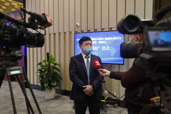 2月28日,通威股份與樂山市政府、五通橋區政府以“云簽約”方式正式簽訂《高純晶硅投資協議書》,宣布永祥樂山高純晶硅二期項目正式落戶樂山市五通橋區。項目預計今年3月開工建設,建成后永祥股份高純晶硅總產能將達11.5萬噸,全球領先。簽約儀式的舉行備受行業關注,新華社、人民網、四川日報、四川電視臺、樂山電視臺、第一財經、黑鷹光伏等主流權威媒體、行業媒體紛紛聚焦簽約現場,通威股份董事、永祥股份董事長兼總經理段雍接受媒體聯合專訪。