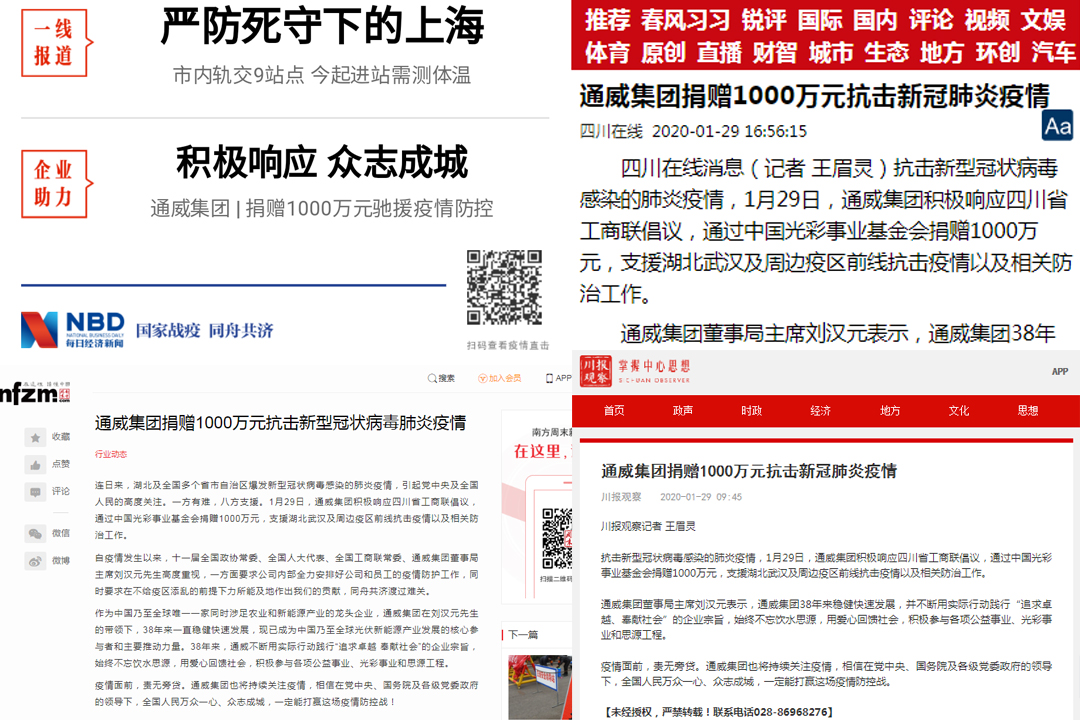 ?通威集團捐贈1000萬元助力抗擊疫情,逾百家媒體點贊!