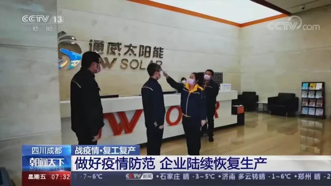 央視新聞頻道《朝聞天下》欄目報道通威太陽能實施嚴格測量體溫等防疫措施