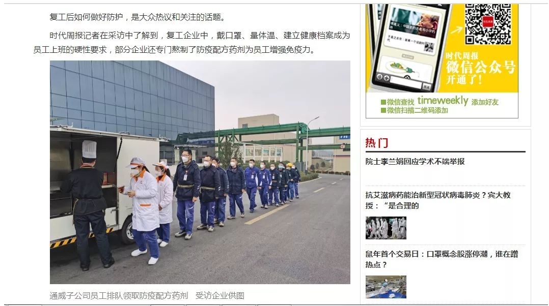 《時代周報》采訪通威股份各分、子公司復工情況,點贊通威防疫工作