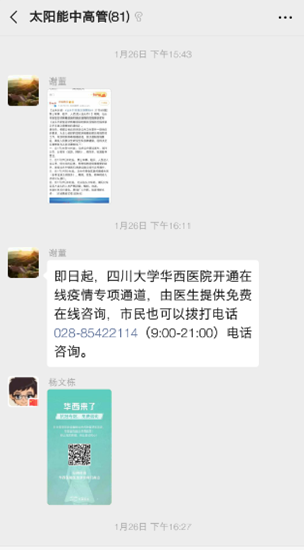 為防控新型冠狀病毒,保障員工健康安全,通威太陽能組織召開了春節假期新型冠狀病毒安全防范工作會議,成立應急防控小組,制定相應的疫情應急防控措施方案,并發布《通威太陽能春節期間新型冠狀病毒應急管理方案》。