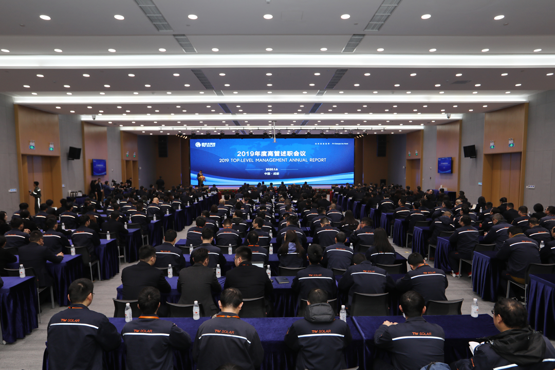1月6日,通威太陽能2019年度高管述職會在成都基地報告廳隆重舉行,十一屆全國政協(xié)常委、全國人大代表、通威集團董事局劉漢元主席出席并作重要指示,通威股份光伏事業(yè)部總裁陳星宇、監(jiān)事會主席鄧三等出席會議。通威股份董事長謝毅、通威太陽能全體高管作2019年度述職報告,成都、合肥基地500余名中高管及員工代表現(xiàn)場及視頻參會。