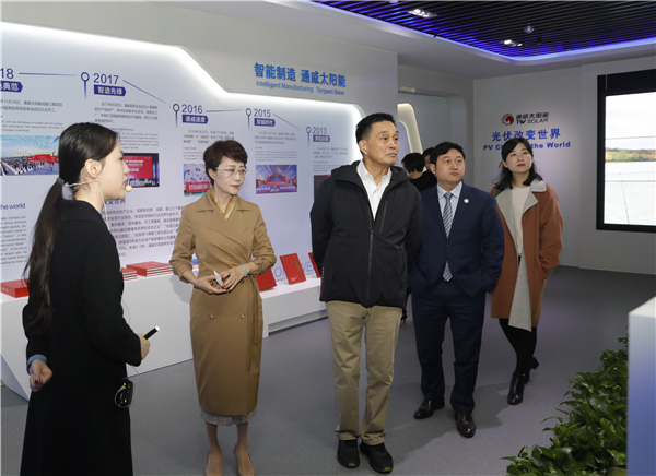 劉永行董事長一行參觀了集團體驗中心,全面了解了通威37年發展歷程及農業、新能源兩大核心主業發展現狀,并對通威“漁光一體”創新模式、通威智能制造領先性表示高度贊賞。