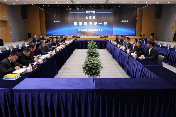座談會上,古建橋縣長肯定了通威多年來的發展成果,并介紹了金堂縣發展情況及相關政策。辜學斌書記詳細介紹了金堂縣區位優勢、經濟規模及淮州新城綠色制造基地、職教基地定位等情況,并表示,金堂縣背靠天府國際機場,規劃有鐵路輔港,交通優勢明顯,發展潛力巨大,希望雙方加強交流,構建合作,共同助力中國光伏行業的發展。