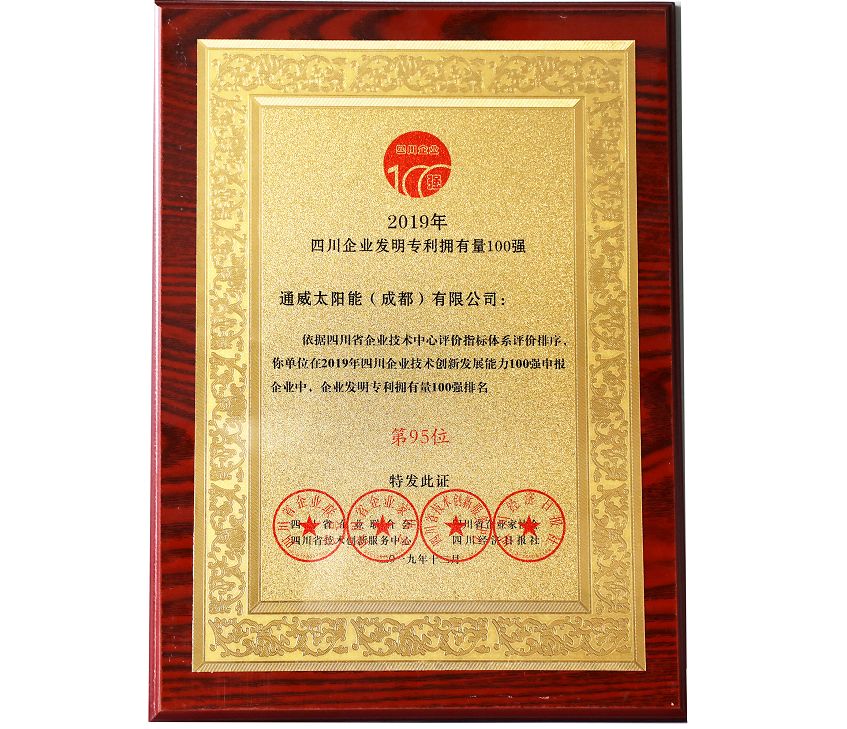 通威太陽(yáng)能成都公司一舉榮獲“四川企業(yè)技術(shù)創(chuàng)新研發(fā)經(jīng)費(fèi)投入100強(qiáng)企業(yè)”、“四川企業(yè)發(fā)明專利擁有量100強(qiáng)企業(yè)”兩項(xiàng)殊榮。