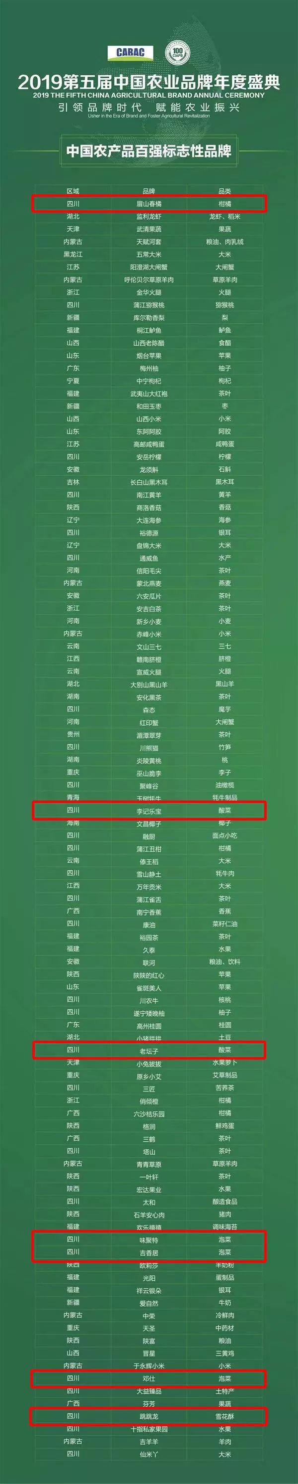 智慧眉山:中國(guó)農(nóng)產(chǎn)品百?gòu)?qiáng)標(biāo)志性品牌揭曉!眉山上榜7個(gè)!