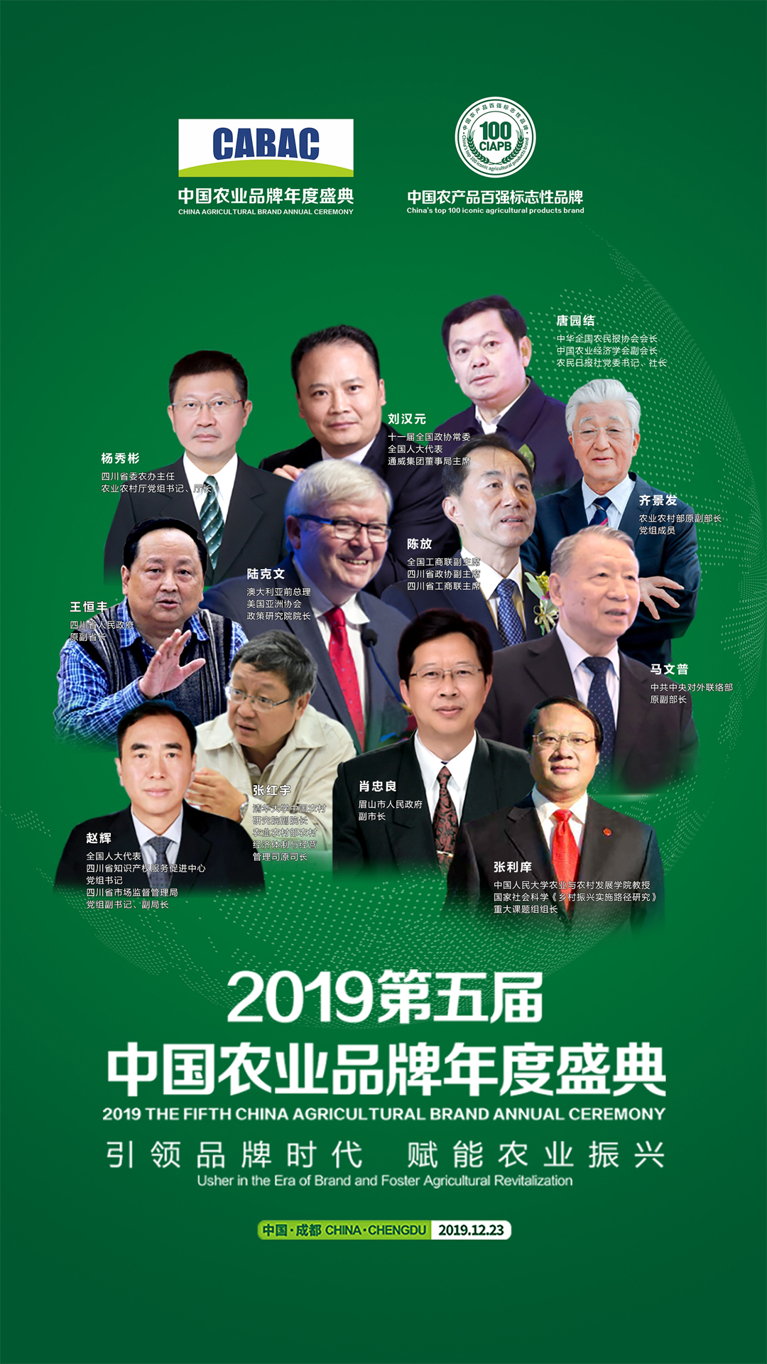 12月23日,以“引領(lǐng)品牌時(shí)代 賦能農(nóng)業(yè)振興”為主題的2019第五屆中國(guó)農(nóng)業(yè)品牌年度盛典即將在成都通威國(guó)際中心隆重舉行。盛典聚焦新時(shí)代背景下我國(guó)農(nóng)業(yè)品牌化發(fā)展趨勢(shì),匯聚相關(guān)領(lǐng)導(dǎo)、專家學(xué)者、行業(yè)領(lǐng)袖、企業(yè)精英、主流權(quán)威媒體參會(huì),是迄今為止規(guī)模最大、規(guī)格最高的中國(guó)農(nóng)業(yè)品牌盛會(huì),與會(huì)嘉賓數(shù)量創(chuàng)歷屆之最。