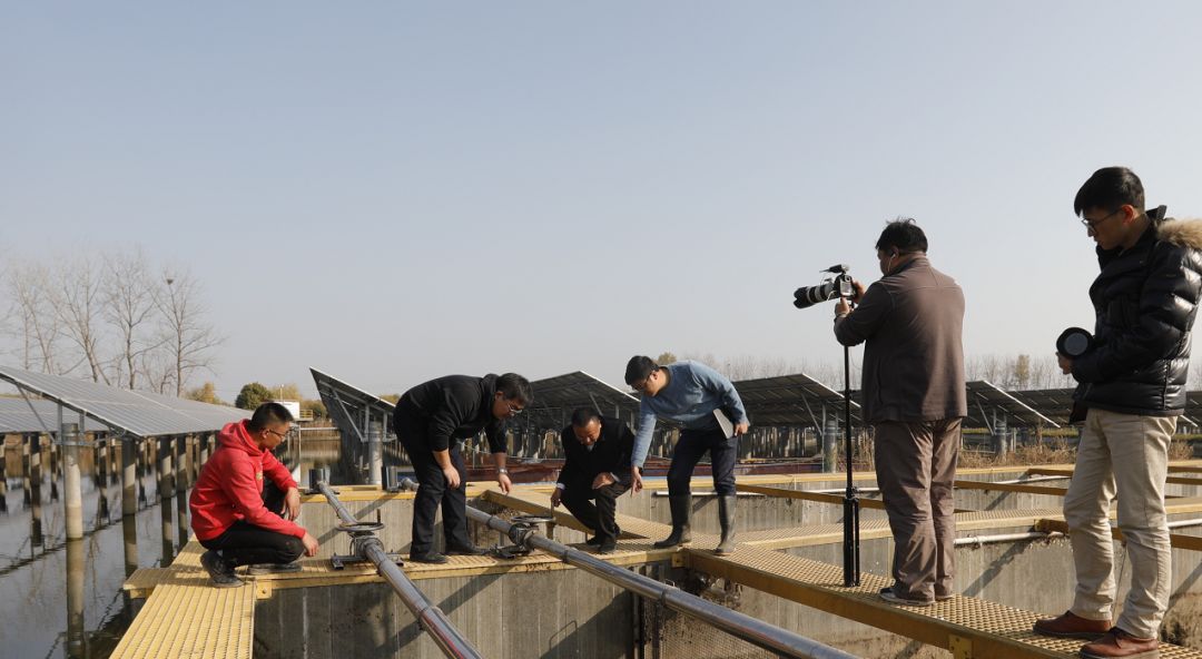 技術(shù)人員現(xiàn)場(chǎng)演示“漁光一體”現(xiàn)代化養(yǎng)殖設(shè)備