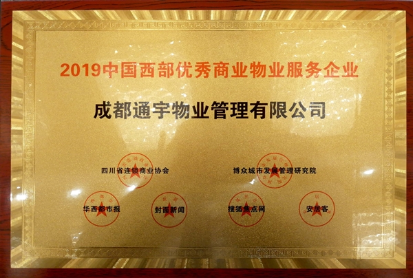 通宇物業(yè)榮獲“2019中國西部優(yōu)秀商業(yè)物業(yè)服務(wù)企業(yè)”