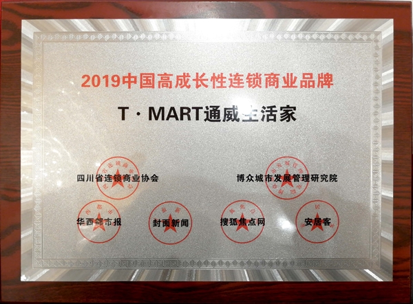 “通威?生活家—T.MART”獲“2019中國高成長性連鎖商業(yè)品牌”稱號