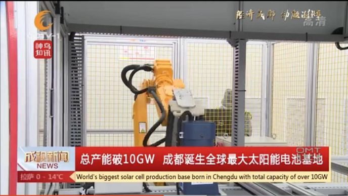 成都電視臺《成視新聞》欄目以《總產能破10GW 成都誕生首個全球最大太陽能電池基地》為題,深度報道了通威太陽能四期項目作為全球10GW電池基地,對區域經濟增長帶來的巨大作用。報道指出,100億產值,將吸引越來越多光伏高端制造配套企業落戶成都,形成產業集聚效應,推動我市建設世界級光伏產業高端裝備研發制造高地。