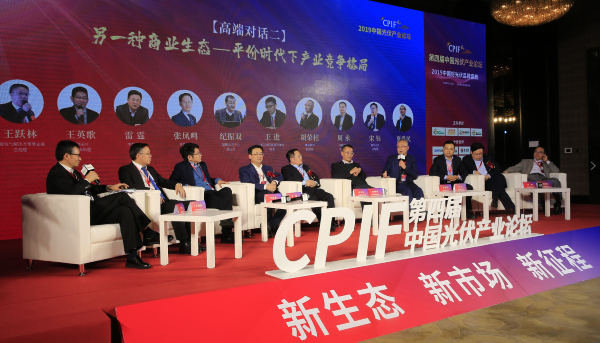 在高端對話環節,胡總與隆基樂葉光伏科技有限公司董事長助理王英歌,北京鑒衡認證中心副主任紀振雙等嘉賓,就“平價時代下產業競爭格局”展開高端對話。胡總表示,從微觀來看,作為光伏龍頭企業,我們要把自己的事情做好;從宏觀來看,光伏行業暫時發展平緩的問題,只是歷史進程中的一個節點,要對未來發展充滿信心。就目前光伏發展趨勢來看,平價上網已是大勢所趨,大眾對于光伏發電的認識也更加廣泛,光伏產業發展已經具備了更加廣泛的群眾基礎。