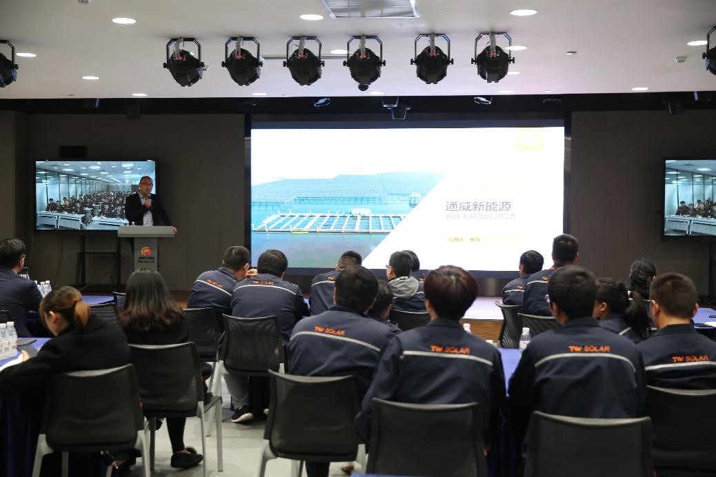 隨著通威太陽能銷售市場的穩步開拓,客戶對企業的專業知識要求隨之提高,為深化光伏電站專業知識,通威大學光伏學院特邀通威股份光伏事業部部長張凡蒞臨公司開展以“光伏電站專業知識”為主題的培訓交流活動,通威太陽能營銷體系全員參與,來自兩地質量部共計110余人現場旁聽。