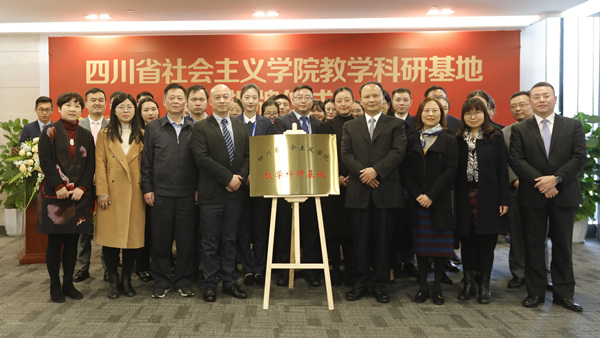 在隨后舉行的儀式上,夏鞍寧副院長、李明書記與劉漢元主席、黃其剛副總裁共同為四川省社會主義學院通威國際中心教學科研基地揭牌。