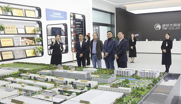 王康鵬總編輯和尹一杰總編輯一行首先參觀了通威集團體驗中心,聽取了通威37年發展歷程及兩大核心主業發展情況介紹,高度贊賞了通威綠色生態發展理念以及多年來在農業和光伏新能源領域持續取得的成績,對通威獨創的“漁光一體”這一高效復合利用國土資源的模式及其發展前景給予高度評價。在通威太陽能成都公司A1車間,考察團一行詳細了解了通威太陽能智能制造生產車間的實時運行情況,并對“無人工廠”高度自動化的生產水平和精益管理給予了高度評價。尹一杰總編輯表示:“這是我目前為止見過的規模最大的、最智能化的單體太陽能電池片生產車間!”